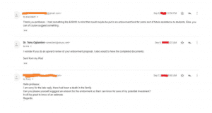 Our request for an endowment against an honorary PhD was now being considered seriously, for we were asked to suggest an amount. So, we did.