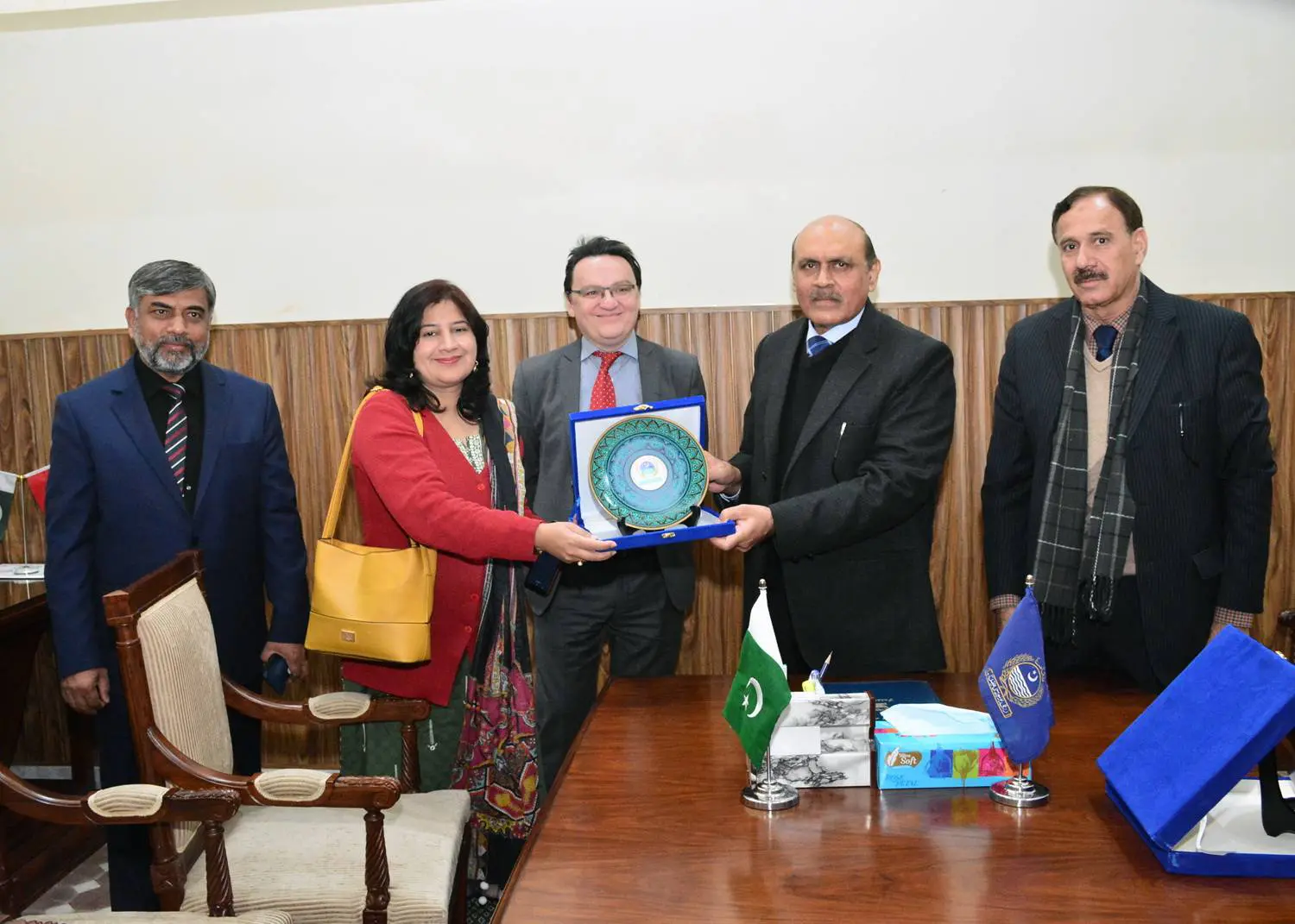 Scholarship award ceremony was held in the Meeting Room of the varsity in which UAF Vice Chancellor Dr Muhammad Ashraf, British Council Deputy Country Director Mark Crossey, British Council Head of Higher Education and Skills Sarah Pervez, UAF Director Financial Assistance Dr Javaid Akhtar, UAF Principal Officer Estate Management Dr Qamar Bilal, Director Research Dr Zahir Ahmad Zahir and others distributed the scholarship certificates. The UAF has won 19 Pakistan Scottish Scholarship Scheme scholarship out of the 100 scholarships for the country.
