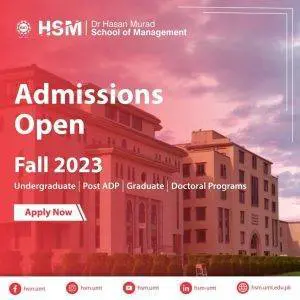 Lahore, Pakistan: Dr Hasan Murad School of Management (HSM) at the University of Management and Technology (UMT) – Ranked the No 1 Private Sector University in Pakistan by Times Higher Education (THE) World University Rankings 2023 – is pleased to announce that admissions for Fall 2023 are now open. With a legacy of over 33 years in developing industry leaders, HSM continues to uphold its commitment to providing quality education and producing graduates equipped with the skills and knowledge demanded by the corporate world. HSM offers a wide range of programs at the undergraduate, post-ADP, graduate, and doctoral levels, ensuring that students can find the academic path that aligns with their career aspirations.