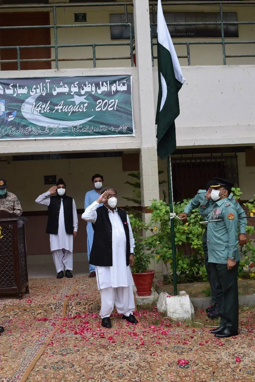 Dawood University of Engineering and Technology also held 75th Independence Day celebrations in its main campus. The flag hoisting ceremony was held on the university lawn. After the recitation of the Holy Quran at 8 am, Vice Chancellor Prof. Dr. Faizullah Abbasi waved the national flag.