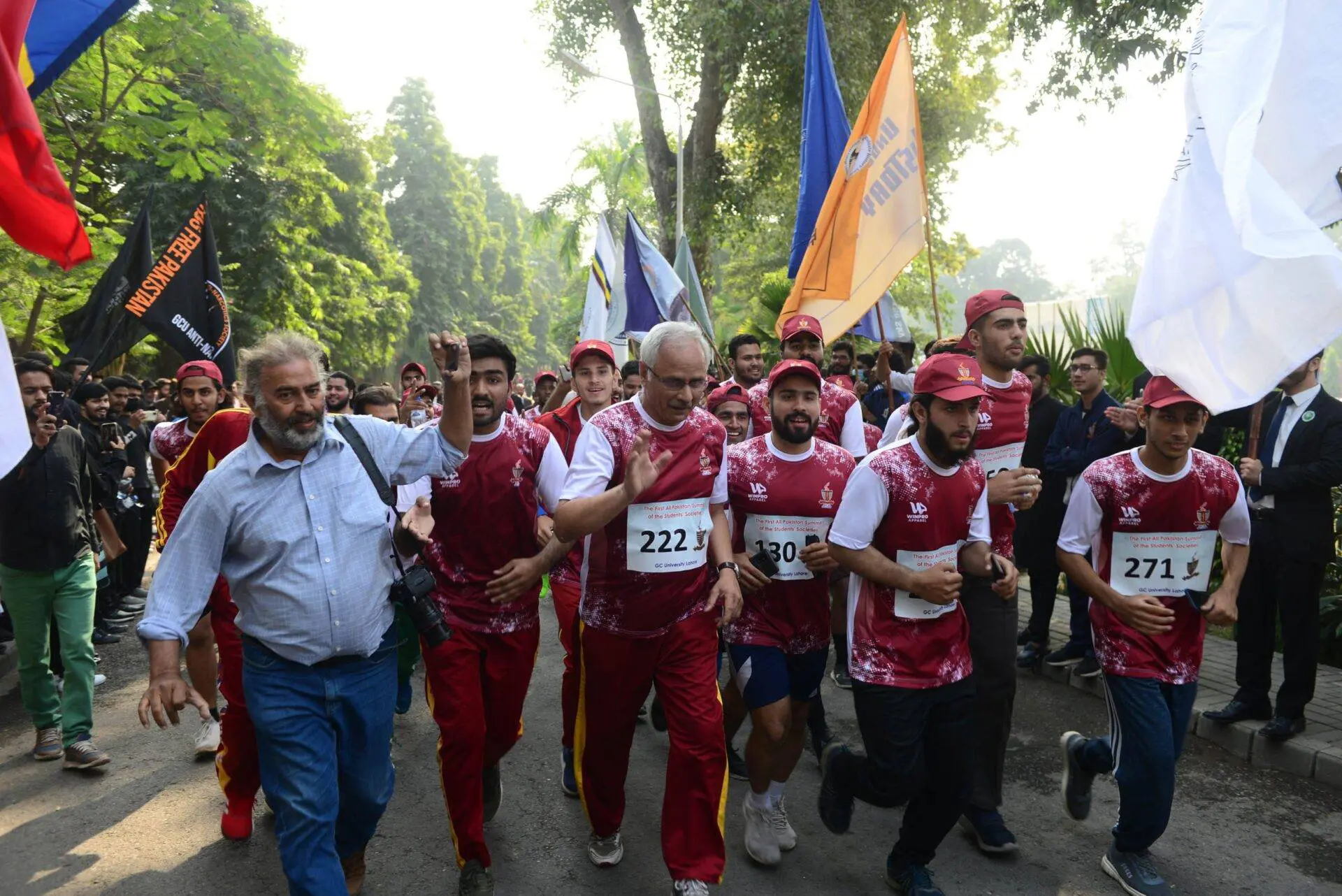 Commissioner Capt (r) Muhammad Usman inaugurated the marathon with a gunshot, saying that this is an amazing sporting activity for the youth that has come from different universities across Pakistan. He wished all the participants of the race to finish strong. He said GCU Vice Chancellor is a role model as he always lead his students not only in academics but also in sports.