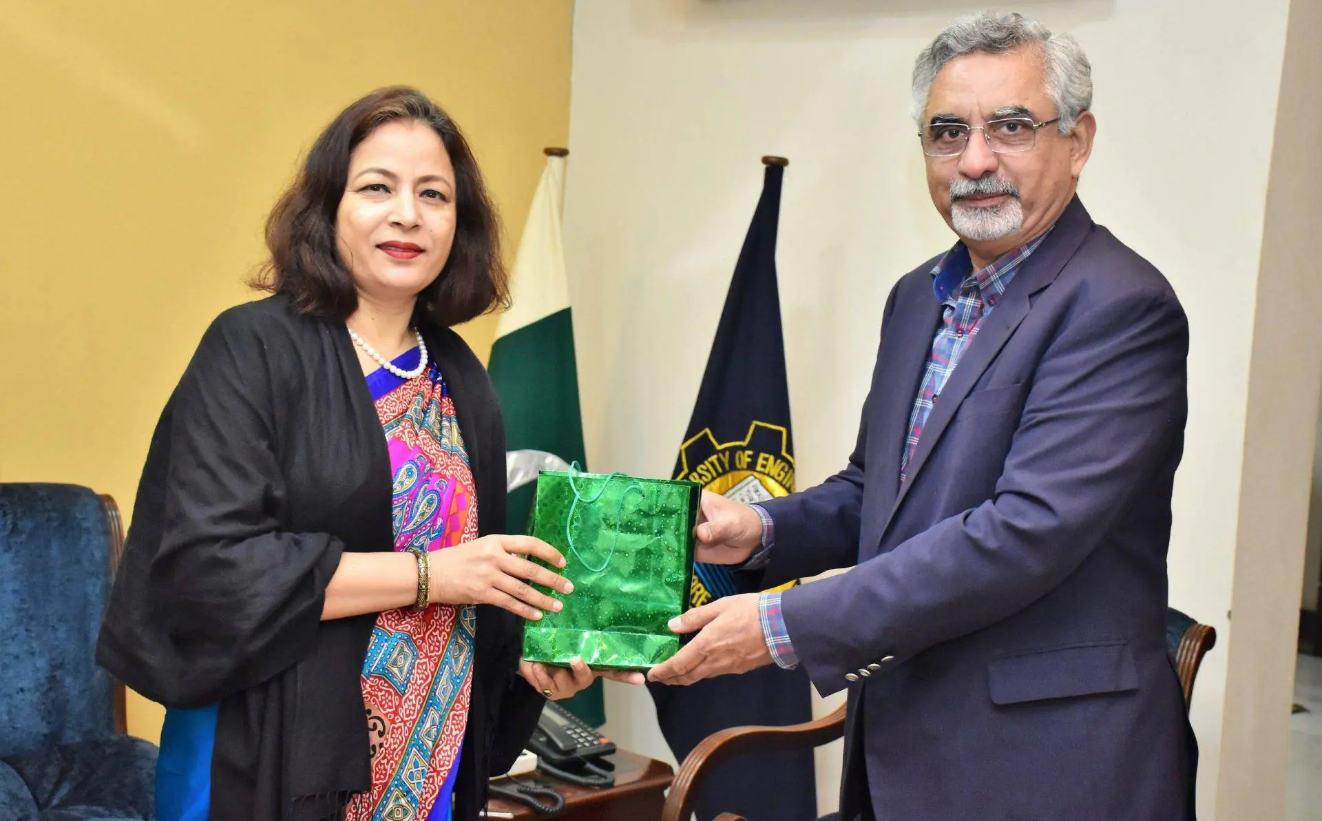 It was expressed by the Ambassador of Nepal in Pakistan H.E . Sewa Lamsal during the meeting with worthy Vice Chancellor UET Lahore Prof Dr Syed Mansoor Sarwar on her visit to UET. She emphasized on making possibilities to bring the people of both countries together for the betterment of the region. She said, “UET has a significant importance among Pakistani universities and is equally popular in Nepal. So, we want to get strong interaction with UET to attain productive skills in shape of well-equipped engineers.”