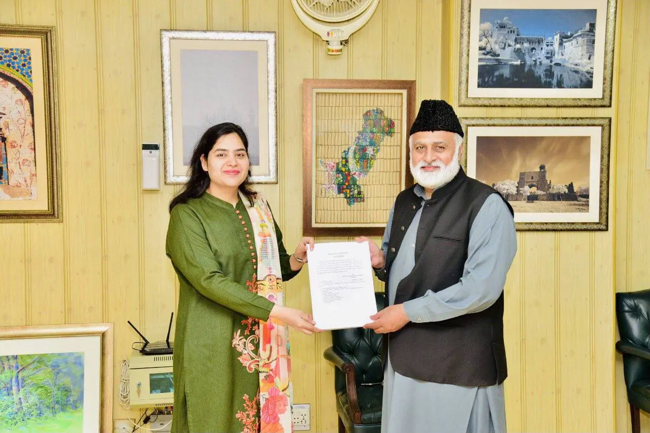 Punjab University Vice Chancellor Prof Dr Niaz Ahmad Akhter presented appointment notification to Dr Lubna at VC Office, Punjab University.