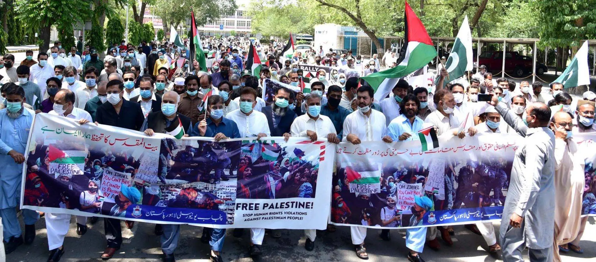 LAHORE: Punjab University administration on Friday took out a massive rally to express solidarity with the innocent people of Palestine and condemn the terrorism and war crimes committed by Israel. The rally was led by PU Vice Chancellor Prof Niaz Ahmed and was taken out from VC office to Gate No 2. Pro Vice Chancellor Prof Dr Saleem Mazhar, Registrar Dr Muhammad Khalid Khan, President Academic Staff Association Prof Dr Mumtaz Anwar, Secretary ASA Dr Amjad Abbas Khan Magsi, deans of various faculties, teachers, officers, employees and Christian community of PU also participated in the rally. The rally expressed anger over war crimes and human rights violations by Israel in the illegally occupied Palestinian land. They chanted slogans condemning Israel’s terrorism and carried Palestinian flags and banners to express solidarity with Palestinians. Addressing the rally, PU VC Prof Niaz Ahmed said that the success of the ceasefire belonged to the valour of Palestinians, not to the United Nations as the UN even could not condemn Israel over killings of innocent civilians. He said that the UN had totally failed to handle this issue in the recent crisis.