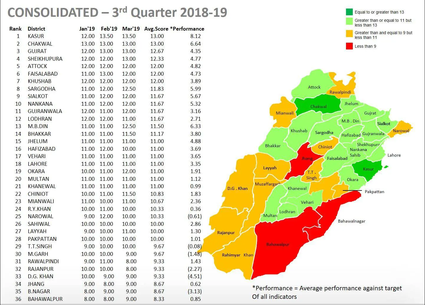 The finding were reported in the 3rd quarterly ranking of districts & divisions for 2018-19 for the months of January, February and March 2019. For this quarter, the indicators have been tweaked and the ranking is based on a new set of indicators.