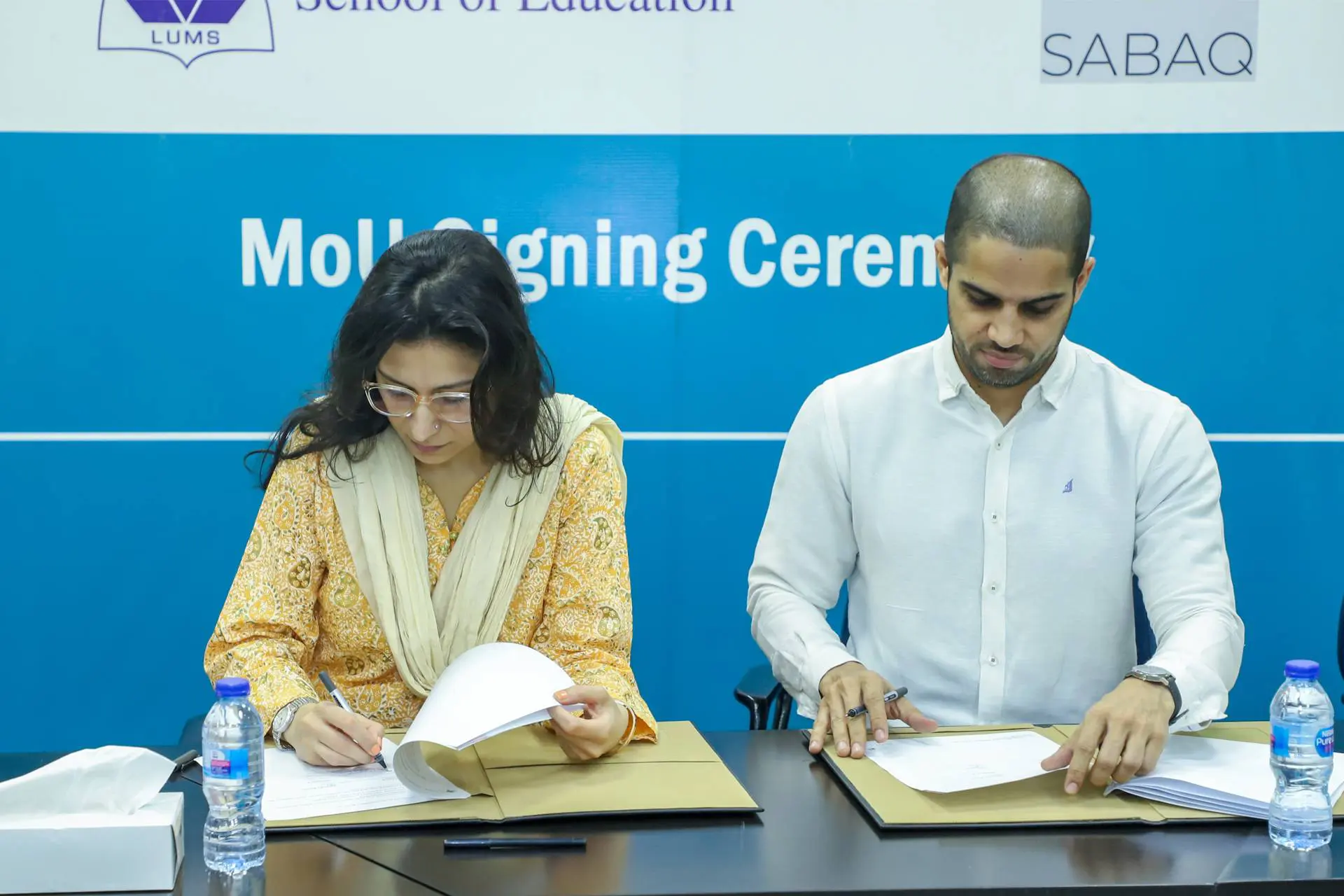 Award-winning EdTech enterprise SABAQ, and Lahore University of Management Sciences (LUMS) have signed a memorandum of understanding (MoU) to collaborate for research and outreach purposes in order to contribute towards building a robust education ecosystem in Pakistan. The MoU was signed by Hassan Bin Rizwan, CEO & Co-founder of SABAQ, and Dr Mariam Chughtai, Associate Dean and Assistant Professor at the LUMS School of Education.