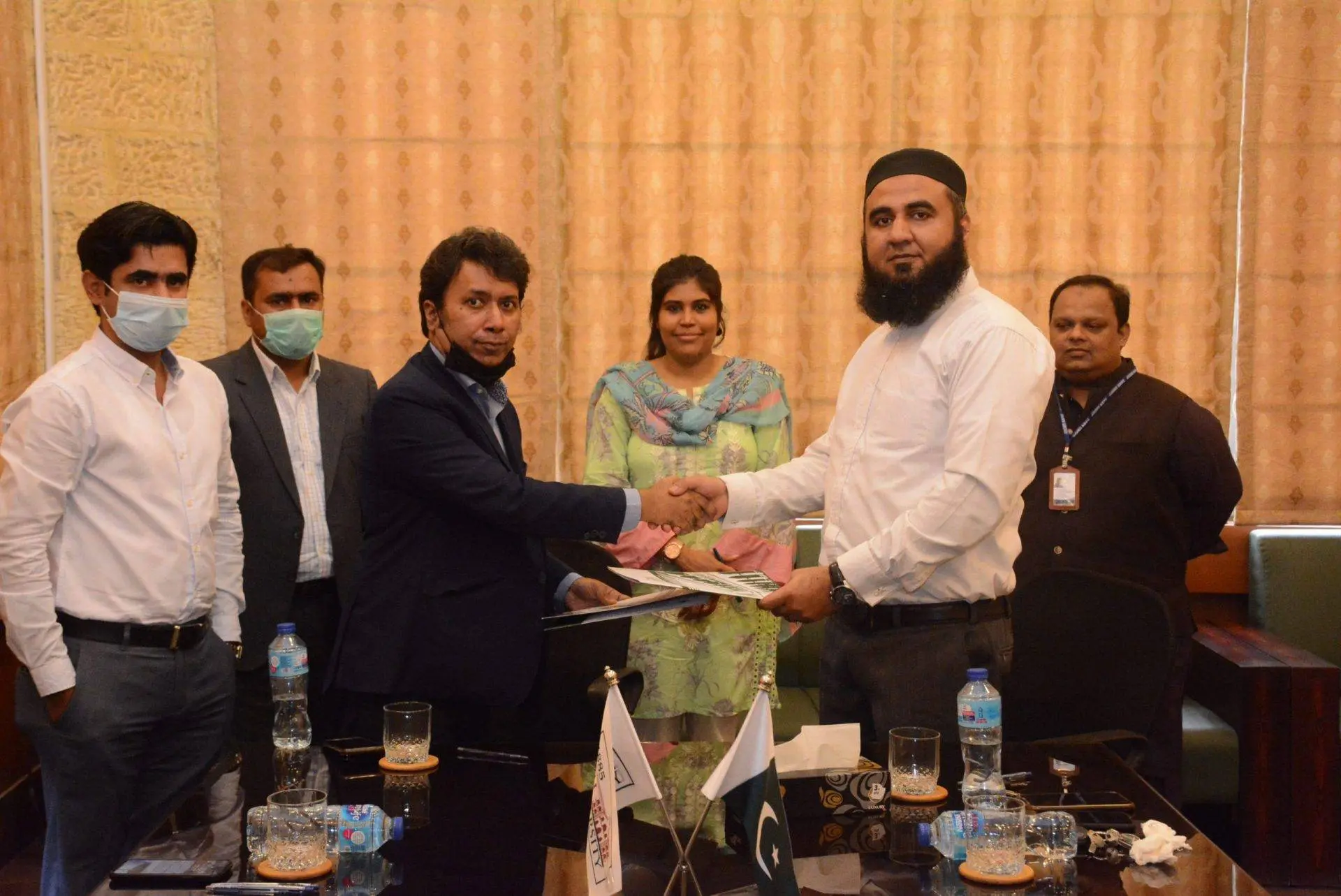 Dr Aamir Iqbal, Director Office of Research Innovation and Commercialization (ORIC), Manager ORIC Dr Afzal Chhajro and Mr Faisal Naseem from Dawn Convertec Limited were also present during the signing ceremony.