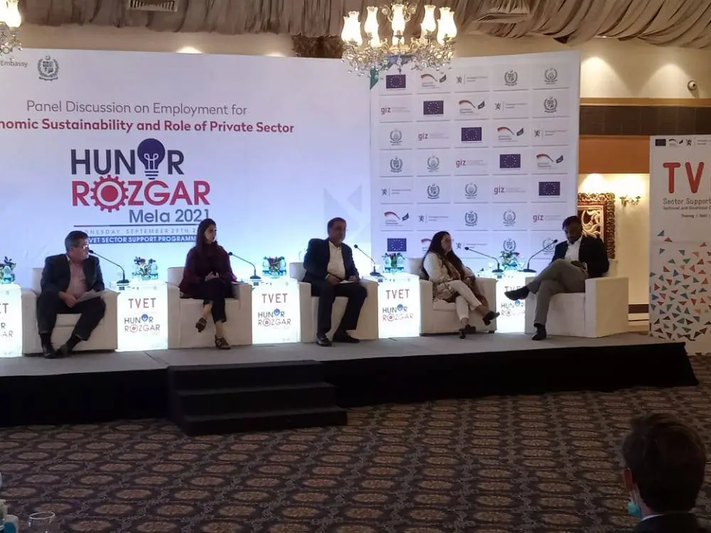 The Hunar Rozgar Mela 2021 was concluded with the insights from the leading representatives of TVET academia and industry like Head of HR, KIA Lucky Motors, Mr. Ashaar Saeed; Director General Sindh, National Vocational and Technical Training Commission, Ms. Nabila Umar, Chairman, Sindh Technical Education, and Vocational Training Authority, Mr. Saleem Raza Jalbani, Dr. Fatima Khushnud Head of Policy, Research and New Business, Engro Energy Limited and Mr. Olaf Handloegten, Cluster Coordinator, Training and Sustainable Growth for Decent Jobs, GIZ-Pakistan.