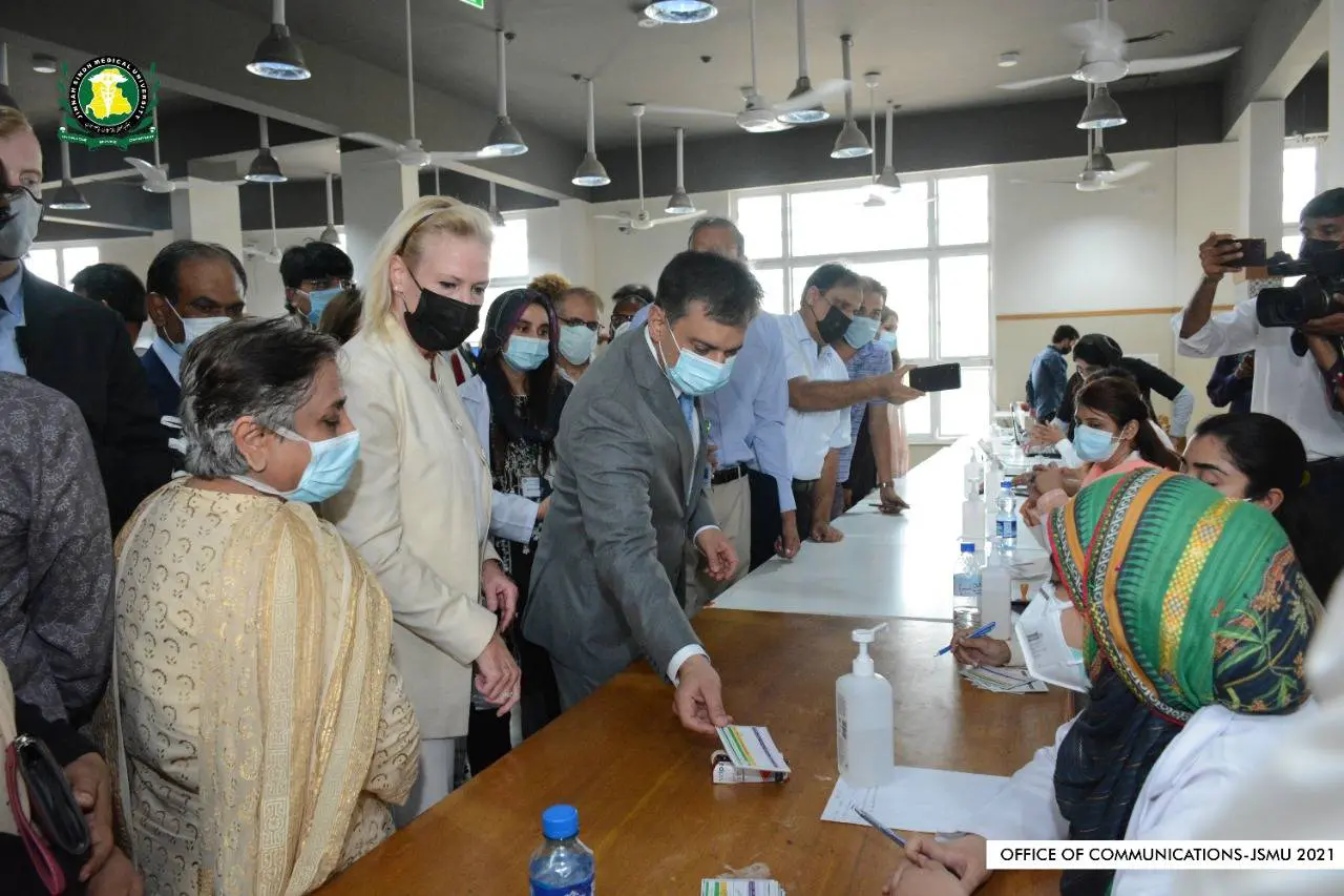 Vice Chancellor Jinnah Sindh Medical University and JPMC Executive Director Professor Shahid Rasul received the distinguished guests along with the Executive Directors of National Institute of Child Health and National Institute of Cardiovascular Diseases Professor Nasir Sadal and Professor Nadeem Qamar. JPMC is the largest tertiary care hospital in the province of Sindh receiving patients from all over the country.